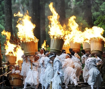 جشنواره آیینی سالانه " ناچی " در ژاپن. روشن کردن 12 مشعل آتش به نشانه 12 خدایگان