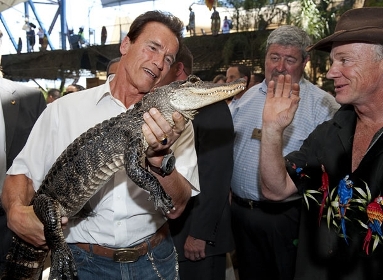 در دست گرفتن یک تمساح 20 ساله از سوی آرنولد شوارتزینگر فرماندار جمهوریخواه ایالت کالیفرنیای آمریکا