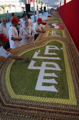 درست کردن بزرگ ترین جعبه حاوی شیرینی در سوریه. این جعبه شیرینی 112 متر طول و 4 تن وزن دارد و در کتاب رکوردهای گینس ثبت شد