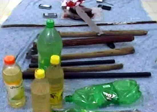 نیروهای امنیتی به همراه این گروه مسلح ، باتوم، شمشیر ، باتوهای فلزی و بطری های بنزین کشف کردند.