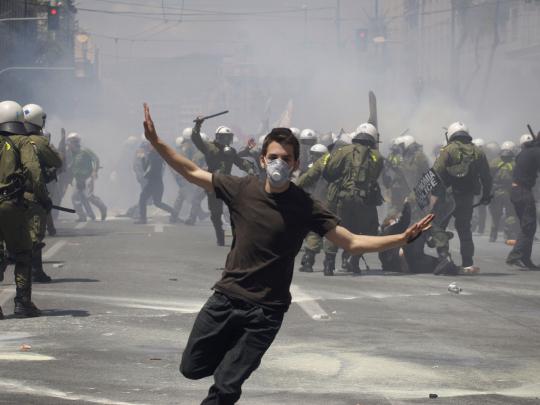 تظاهرات مردم يونان در آتن در اعتراض به سياست هاي رياضت اقتصادي دولت