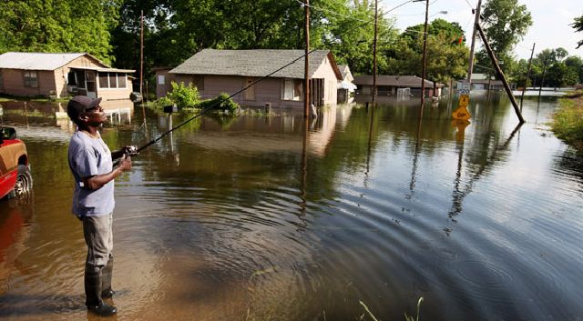 ماهيگيري از سيلاب گل آلود شهر ويكزبورگ مي سي سي پي آمريكا