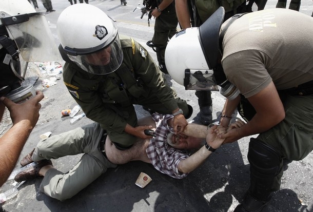 در پی شدت گرفتن اعتراضات مردمی در یونان و حرکت آنها به سمت پارلمان این کشور پلیس به گاز اشک آور متوسل شده و عده ای از تظاهرکنندگان را بازداشت کرد.