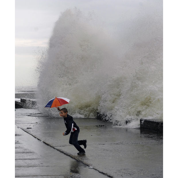 فرار يك پسر بچه از موج بلند آب در ساحل شهر سوچي روسيه
