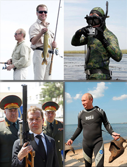 با نزديك شدن به زمان انتخابات رياستجمهوري روسيه نخست وزير و رئيس جمهور اين كشور در تلاش براي خودنمايي بيشتر يك روز را با هم به ماهيگيري، قايقراني و غواصي پرداختند.