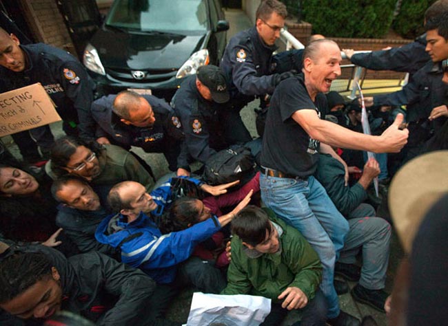 اعتراض به سفر ديك چني معاون رييس جمهوري سابق آمريكا به ونكوور كانادا