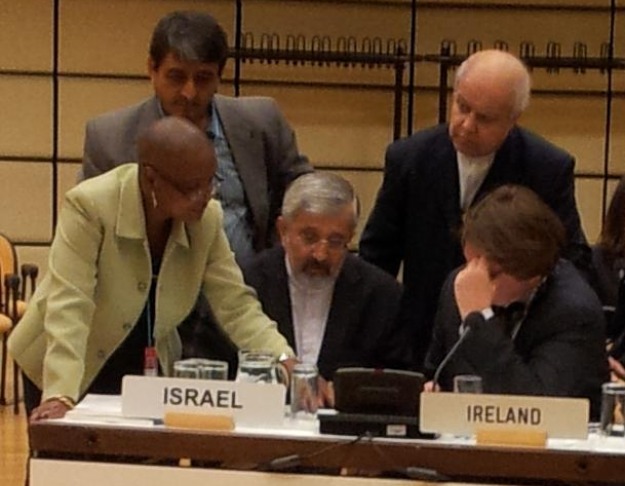 فرارو - در عکس زیر دکتر علی اصغر سلطانیه، نمایندگی دائم ایران در آژانس بین المللی انرژی اتمی در جلسه ماه گذشته آژانس دیده می شود که پشت میز نمایندگی اسرائیل نشسته و در حال انجام یک گفتگوی رسمی است.