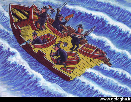 دم گل آقا با این کاریکاتورش که یک دنیا حرف را تداعی میکنه گرم ، شکستن قایق امن جمعی (جامعه) و سعی در ساختن قایق های تک نفره (حافظ منافع شخصی ) برای نجات از غرق شدن خود و بی توجه به همسفرانمان !!!! واقعا چه تعبیر زیبائی از شرائط روزمان را به تصویر کشیده .