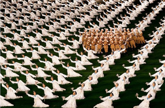 برای نخستین بار یک عکاس آلمانی مقامهای کمونیستی کره شمالی را متقاعد کرده که اجازه دهند تا از نزدیک از برگزاری یک مراسم عمومی در استادیوم ملی این کشور عکاسی کند. بر اساس این گزارس، بیش از 100 هزار تن از شهروندان کره شمالی که اغلب آنان ژیمناستیککار بودهاند در این مراسم شرکت داشتهاند. گفته شده که سرعت و دقت بسیار زیاد این گروه بزرگ از مجریان این مراسم، برای عکاس آلمانی که برای نخستین بار توانسته بوده تا از نزدیک شاهد برگزاری چنین مراسمی باشد بسیار شگفتانگیز بوده است.