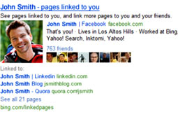 به گفته وبسایت eweek با استفاده از این ویژگی، وقتی کاربران برای مثال نام جاناسمیت را در موتور جستوجوی بینگ جستوجو کنند با دیدن صفحات لینک شده او میتوانند فرد مورد نظر را از میان دیگر افراد هم نام او تشخیص دهند.