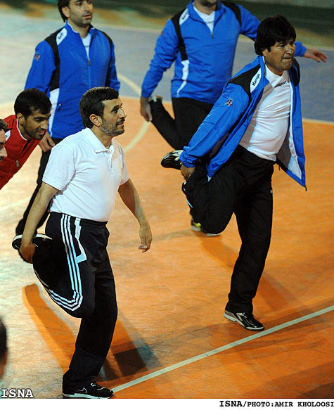 احمدی‌نژاد و مورالس در حال نرمش (عکس)