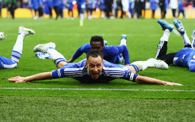 عصر ایران ورزشی - شادی بی حد و حصر جان تری و سایر بازکنان چلسی پس از قهرمانی این تیم در جام جذفی انگلستان. چلسی امشب (شنبه) در فینال جام حذفی انگلستان لیورپول را 2 بر 1 برد.