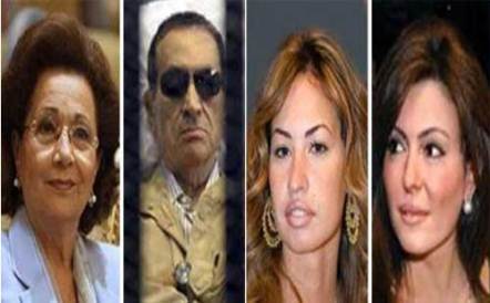 " سوزان" همسر حسنی مبارک به همراه "خديجة" و "هایدی" همسران جمال و علاء، دو پسر مبارک.