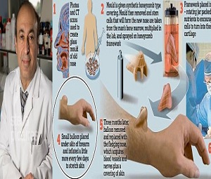 این بینی جدید که با شیوه پیشگامانه پروفسور اسکندر سیفعلیان، استاد کالج دانشگاهی لندن به وجود آمده، اولین بینی جهان بوده که از سلول بنیادی تولید شده است.