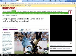 ایرنا - سرخیو آگرو بازیکن تیم منچسترسیتی انگلیس به خاطر تکل دو پایی که در جریان مسابقه نیمه نهایی جام حذفی انگلیس روی داوید لوییس مدافع چلسی انجام داده بود از او عذرخواهی کرد.