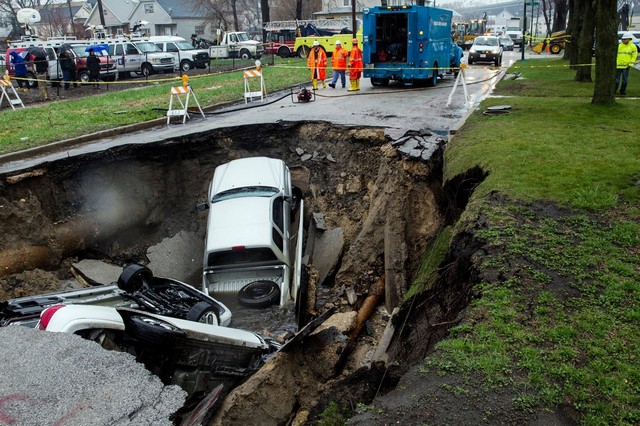 باز شدن یک حفره زمینی در شیکاگو آمریکا