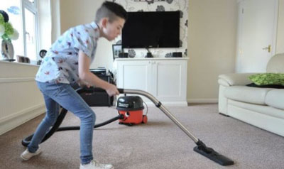 پدر لین می گوید: جایزه خرید درس خواندن او تنها 15 دقیقه بازی و گردش در فروشگاه جاروبرقی است،در این فروشگاه ها او کاملا خود را خالی میکند.