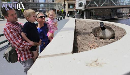 خبر آنلاین - غاز مهاجر کانادایی کنار پل در مرکز شهر میلواکی در امریکا تخم گذاشت.عابران با شور و هیجان از کنار این غاز طوری عبور می کنند که انگار برای اولین بار است که یک غاز می بینند.جالب اینجاست که مرغان دریایی نیز گه گداری به وی نزدیک خیابان ویسکانسن سر می زنند.