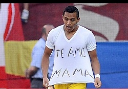 مهاجم شیلیایی بر روی پیراهنش عبارت ( Te Amo MAMA) «مادر دوستت دارم » را به تماشاگران نشان داد.