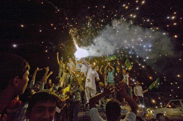 شادمانی هواداران حزب مسلم لیگ از پیروزی نواز شریف در انتخابات پاکستان(لاهور)