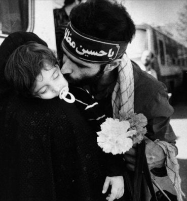 اما هنوز هستند تک و توک، رزمندگانی که از عزیزان خود دل نکنده اند. پدری که انتظار می کشید تا شاید طفل خردسالش از خواب بیدار شود، به بوسه ای بر گونه او که هنوز آرمیده اکتفا می کند و این جا است که به دام عکاس می افتد.
