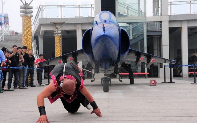 کشیدن یک جت جنگنده 4 تنی (چین)