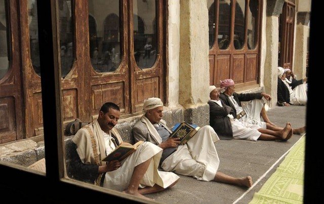 قرآن خوانی در ماه رمضان در مسجدی در شهر صنعا یمن