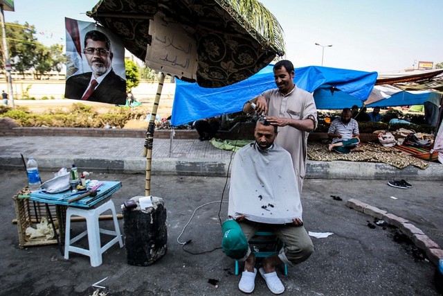 آرایشگری خیابانی حامیان مرسی در قاهره
