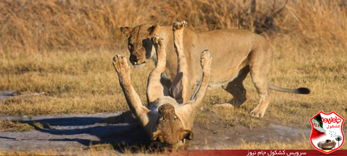 آنها که بسیار هم خوش شانس بودند شاهد دعوای شوخی مانند دو ماده شیر بودند.