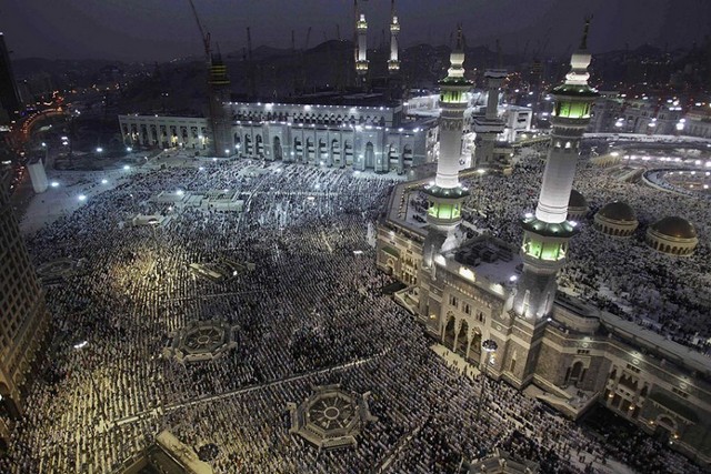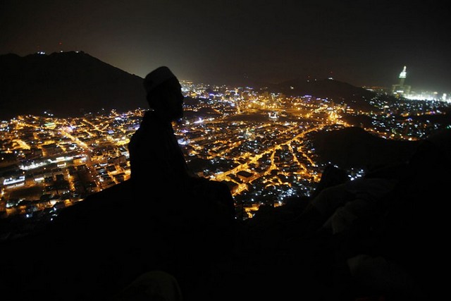 مناجات شبانه یک مسلمان در کوه نور مشرف به مکه