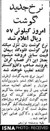 در ادامهی این خبر آمده است: «امروز نرخ جدید گوشت از طرف شهرداری اعلام شد و مأمورین اداره «خوار و بار» و اعضای اتحادیه صنف قصاب پس از پنج ساعت مذاکره و گفتوگو موافقت کردند که نرخ جدید گوشت، کیلویی 57 ریال اعلام شود. این نرخ، قیمت یک کیلو گوشت مخلوط است که از طرف مأمورین شهرداری و دکاکین قصابی اجرا خواهد شد.»