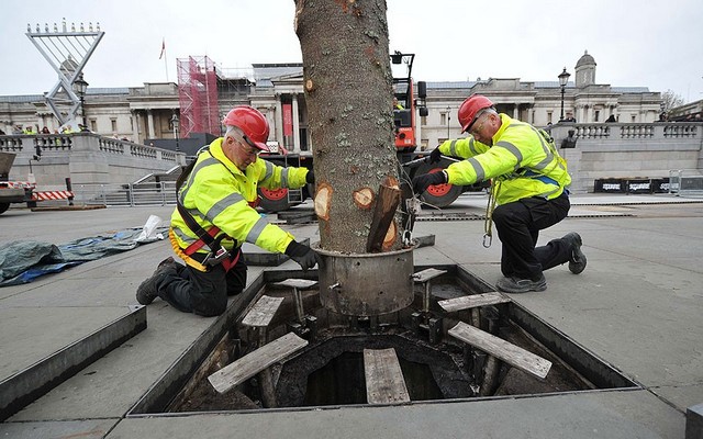 نصب درخت کریسمس در میدان ترافالگار لندن