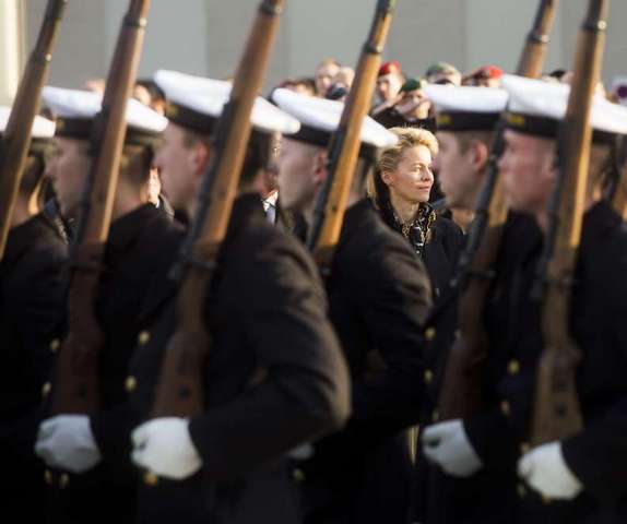 نخستین سان دیدن خانم " اورسولا وون در لین" وزیر دفاع جدید آلمان و نخستین وزیر دفاع زن این کشور از رژه ارتش در مقابل ساختمان وزارت دفاع در برلین