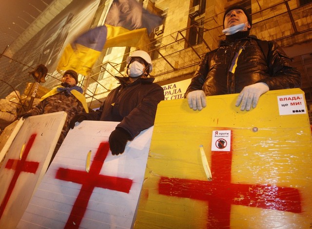 ادامه تظاهرات و سنگر بندی طرفداران پیوستن اوکراین به اتحادیه اروپا در شهر کی یف