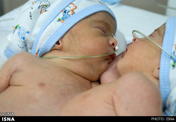 صبح امروز (چهارشنبه نهم بهمنماه)، در یک عمل سزارین، دو نوازد که از ناحیه شکم و سینه به هم چسبیدهاند، متولد شدند.