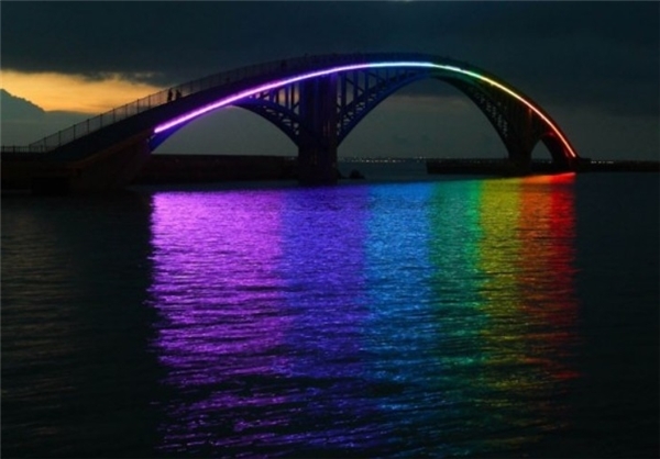 پل رنبو – واقع در تایوان است. با یک نوار نازک نئون به صورت رنگین‌کمان هر شب در سطح آب روشن می‌شود.