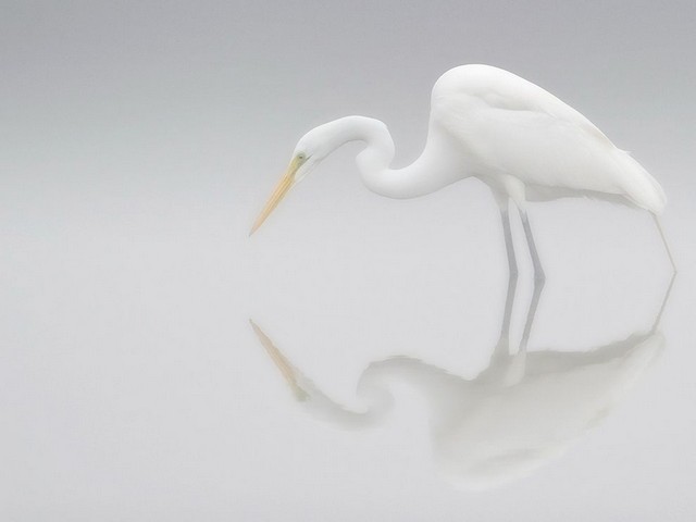 یک مرغ ماهیخوار در صبح مه زده در دریاچه ای در نیوجرسی آمریکا