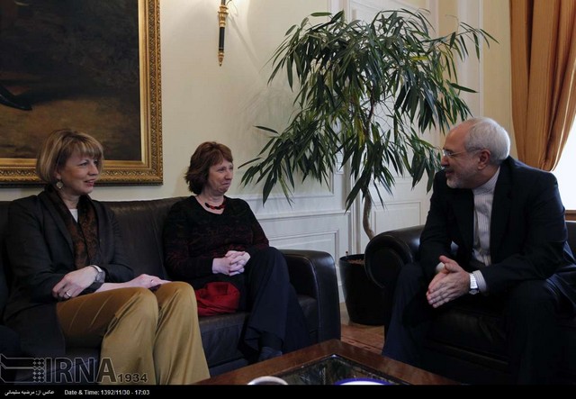محمد جواد ظریف وزیر امور خارجه و کاترین اشتون مسوول سیاست خارجی اتحادیه اروپا در دومین روز مذاکرات ایران و 1+5 در وین اتریش با یکدیگر دیدار و گفت و گو کردند.