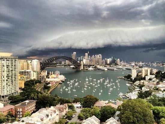 تاپ ناپ: در چند روز گذشته ابر هایی عجیب آسمان شهر سیدنی در استرالیا را فرا گرفتند. ساکنین این شهر توانستند از این ابر ها از زوایای محتلف و مکان های متفاوتی عکس بگیرند. این گونه از ابرها معمولا به عنوان پیشرو و بخشی از یک گروه ابر بزرگتر قبل از شروع طوفان در آسمان ظاهر می شود. زمانی که از رو به رو به این ابر نگاه کنید تصور می کنید که یک دیوار از ابر در حال حرکت است اما این ابرها بسیار کلفتر از یک دیوار هستند. تصاویری از این نوع ابر ترسناک ودلهره آور را در این آلبوم تاپ ناپ مشاهده میکنید.