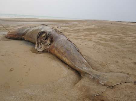 پیدا شدن لاشه نهنگ در ساحل دیلم بوشهر (+عکس)