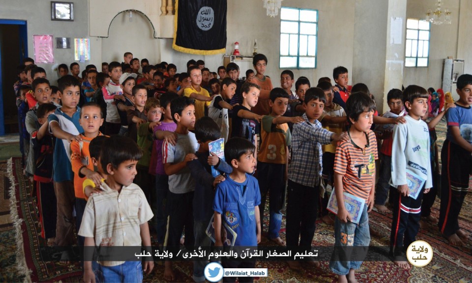 عصرایران - داعش بعد از استقرار در مناطق اشغالی سوریه، اقدام به برگزاری کلاس هایی برای کودکان و نوجوانان کرده است تا آنها را جذب خود کند. در این تصویر ، یکی از کلاس های داعش در "حلب" را می بینید.