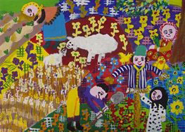 او ادامه داد: در نقاشیام انواع حیوانات، مزرعه و گلها را کشیدم و آدمهایی که در حال کشاورزی هستند و از بودنشان در طبیعت لذت میبرند. من این تصویرها را در سفرها و گردشهایی که به مزرعهها و جاهای سرسبز رفته بودم، دیدم و آنها را در نقاشیام آوردم.