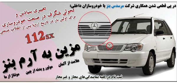 احمدرضا کاظمی در صفحه طنز روزنامه قانون یک آگهی طنز با مضمون حضور قطعی مرسدس بنز در ایران منتشر کرد.