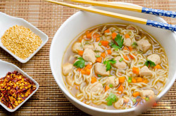 4- سوپ مرغ سوپ مرغ، جزو آن گروه از غذاهایی است که مصرف آن، هم برای پیشگیری از ابتلا به سرماخوردگی توصیه می شود و هم برای درمان آن. سوپ مرغی که حاوی گوشت مرغ، ادویه ها، هویج، پیاز و سیر باشد، علاوه بر افزایش قدرت سیستم دفاعی بدن باعث افزایش رطوبت و دمانی حلق و بینی هم می شود.