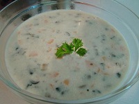 حرارت را خاموش کرده خامه را با مقداری از سوپ رقیق و هم دما می کنیم و به