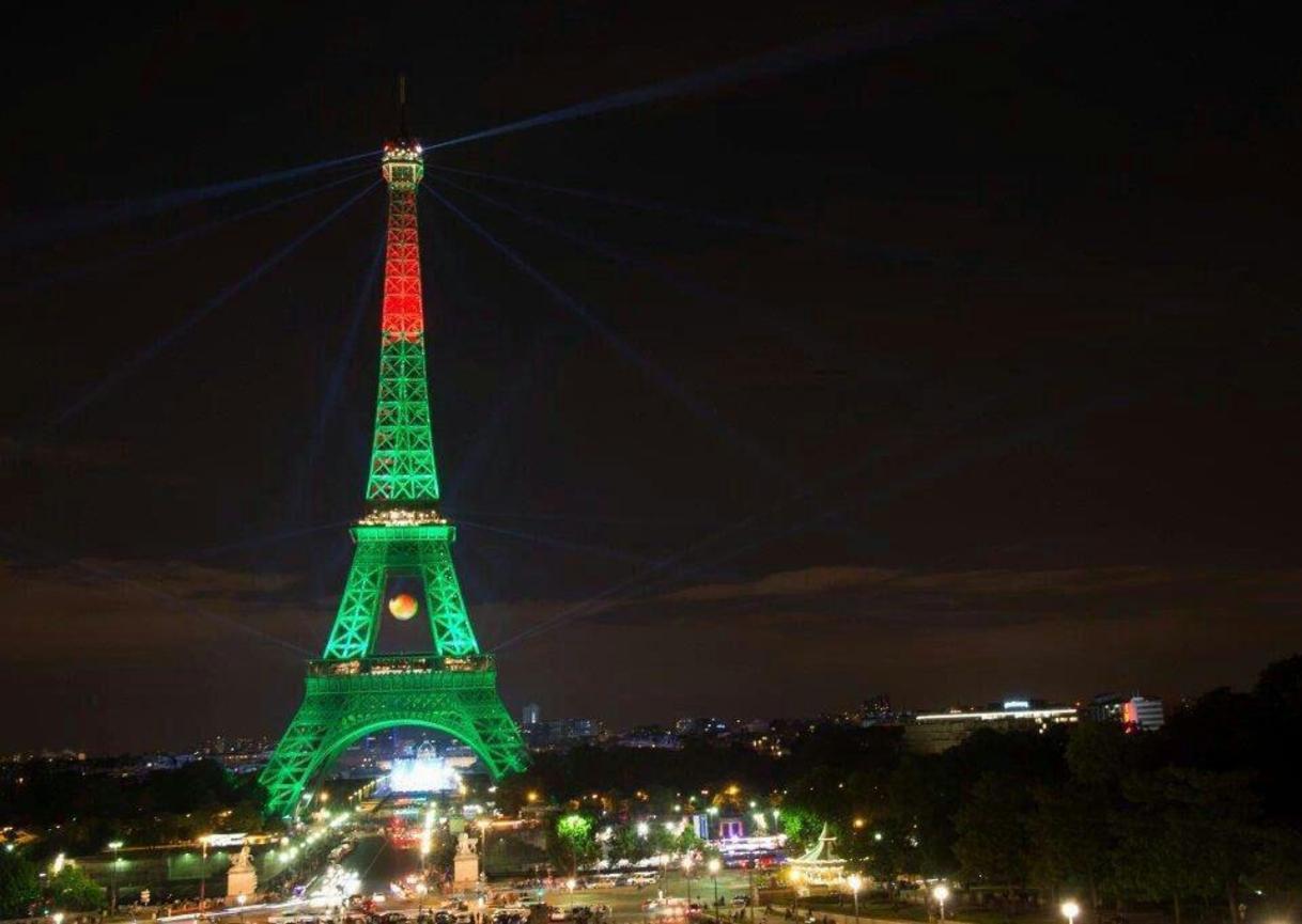 برج ایفل پاریس، پس از پایان بازی فینال (فرانسه - پرتغال) به رنگ پرچم پرتغال، قهرمان یورو 2016 درآمد.