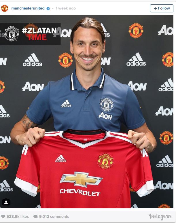 زلاتان ابراهیموویچ که هنوز برای باشگاه جدیدش منچستریونایتد پا به توپ نشده، تا به همینجای کار دو رکورد باشگاه را شکسته است.به گزارش "ورزش سه"، پست اینستاگرامی باشگاه منچستریونایتد که طی آن انتقال زلاتان را تایید میکرد، تا به حال 529,322 لایک خورده که بیشترین لایک در میان پستهای اینستاگرام منچستریونایتد است.