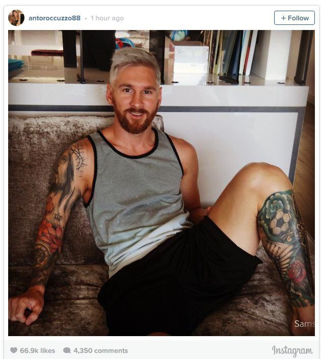 لیونل مسی ستاره بارسلونا هم بالاخره موهایش را رنگ کرد. ستاره آرژانتینی بارسلونا پیش از این همیشه با رنگ طبیعی موهایش در زمین ظاهر می شد و امسال تصمیم گرفته با این شکل به زمین بیاید. این عکس را همسرش منتشر کرده است.