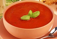 این سوپ با استفاده از فلفل دلمه ای قرمز شیرین، گوجه فرنگی، فلفل قرمز و ریحان، طعم واقعی غذاهای مدیترانه ای را دارد. اگر با نان زیتونی گرم میل شود، بسیار دلچسب خواهد بود.
