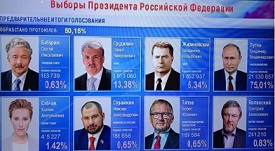 ساعتهای کرملین هم به شماره افتادهاند تا شاهد حضور ساکن بعدی کرملین باشند. با این حال، در سطح شهر محسوس نیست که انتخابات این همه نامزد داشته باشد. حتی پوسترهای تبلیغاتیای که مردم را به صندوقهای رای فرا میخواند، همان طرح و نما و رنگهایی را دارد که تبلیغات انتخاباتی ولادیمیر پوتین. گویی تمام نامزدها حضوری نمادین دارند و در عوض، این پوتین است که میتازد و عکسهایش در همه جا به چشم میخورد. برخی گزارشها مینویسند انتخابات، بیشتر به یک همهپرسی برای تایید دگرباره مشروعیت حکومت ولادیمیر پوتین میماند. یکی از ساکنان مسکو میگوید: «به باور من، این انتخابات نیست، بلکه خودانتصابی رئیسجمهور فعلی فدراسیون روسیه است.»